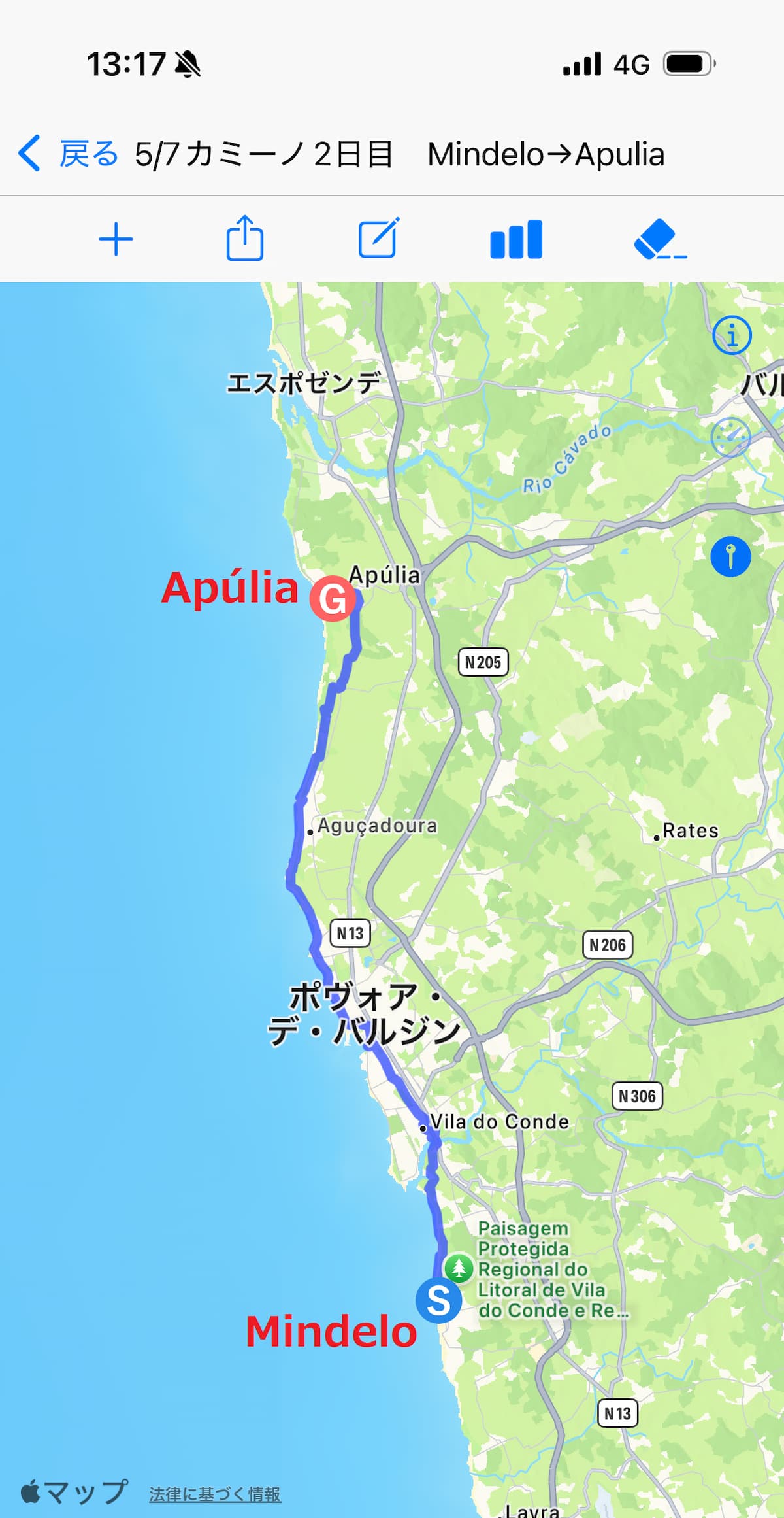 カミーノ2日目はミンデロ(Mindelo)〜アプーリア(Apúlia)です。