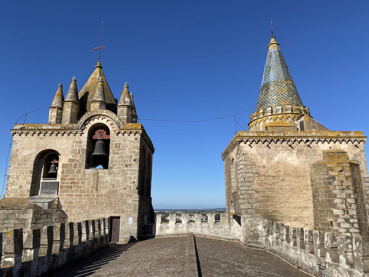 14世紀のゴシック回廊と、大聖堂の屋上です。エヴォラ大聖堂は屋上に行けるのが見どころの1つです。エヴォラの街並みも見渡せます。鐘楼のタイル張りの円錐屋根が可愛らしいです。