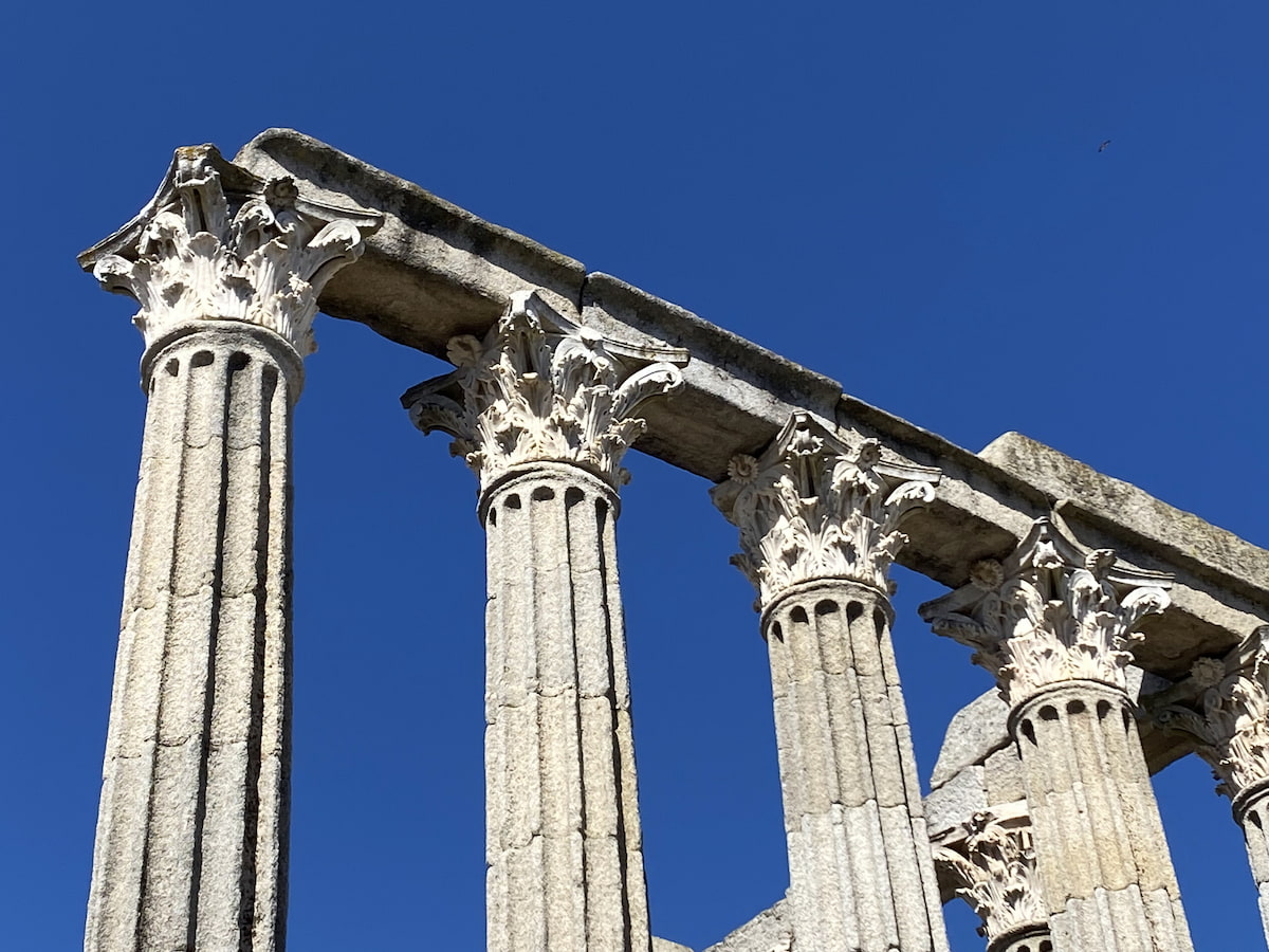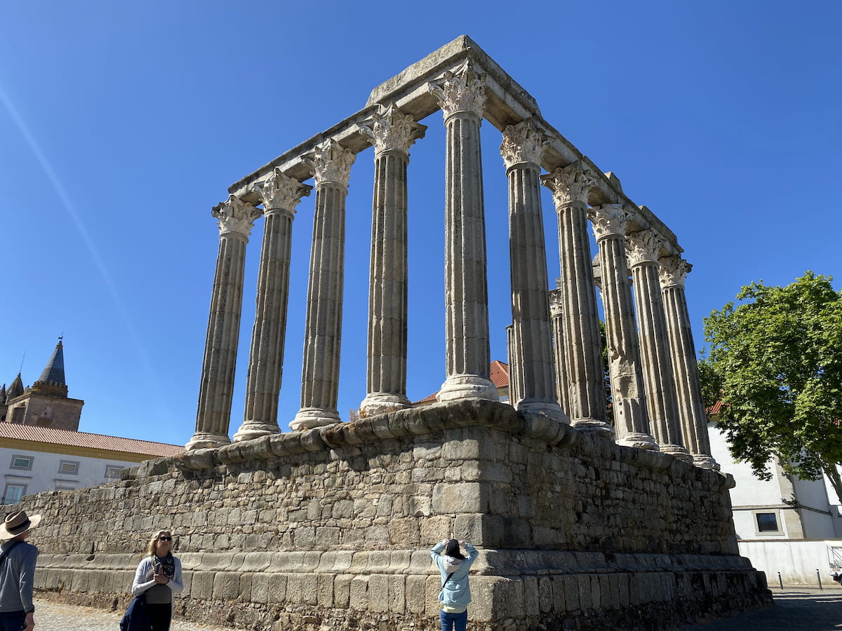 エヴォラ大聖堂すぐ近くにある「ディアナ神殿」です。ディアナはローマ神話の女神ですが、これは後世に付けられた名前で、正式名称は「ローマ神殿」です。紀元1世紀頃にローマ帝国初代皇帝アウグストゥスを祀るために建造されました。5世紀にゲルマン人により破壊され、中世は要塞として利用されていました。現在は修復され保存されています。コリント式の柱が14本残っています。