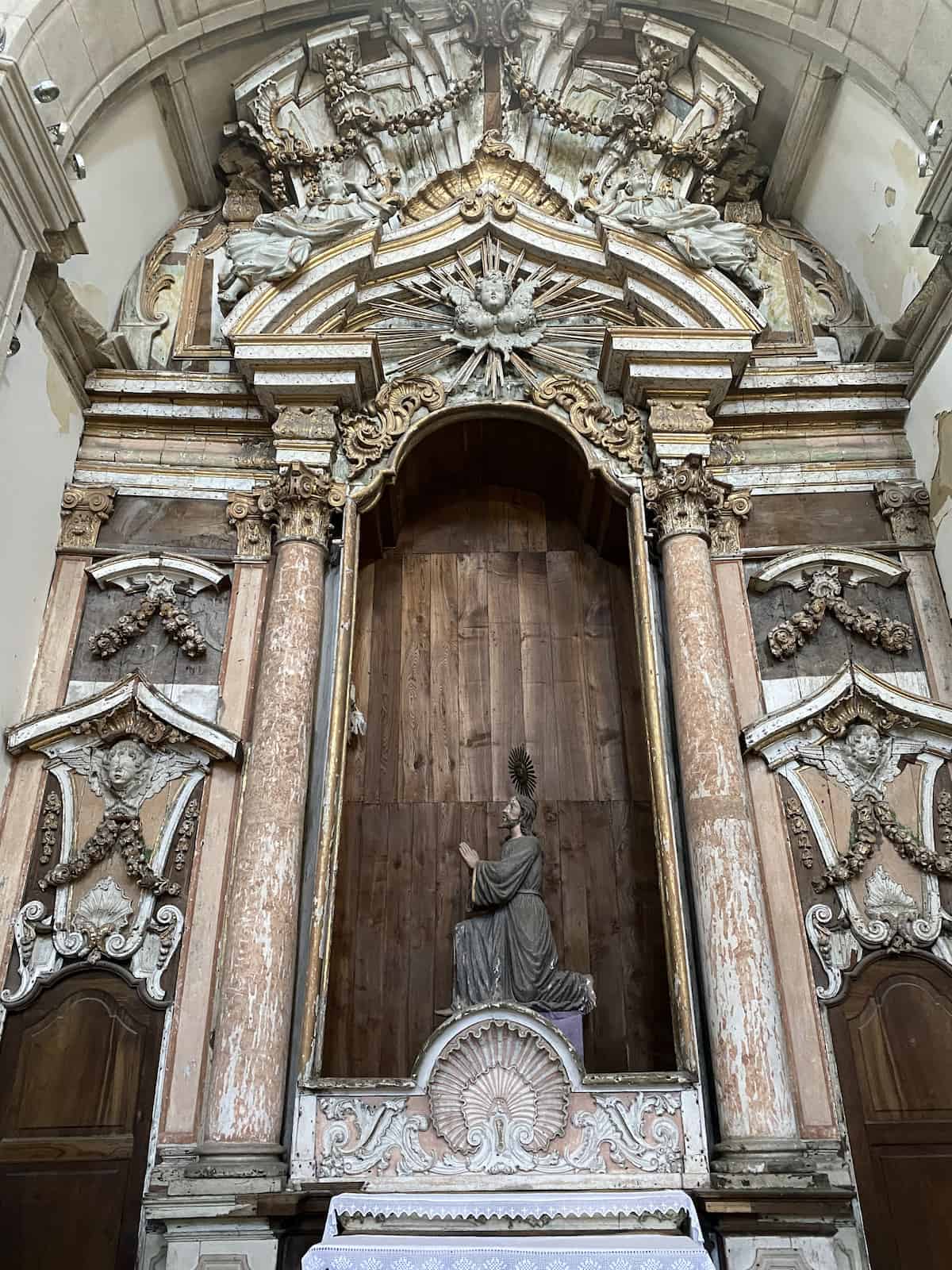 セラ・ド・ピラール修道院はGoogle Mapで確認すると臨時休業とのことだったので(2026年2月現在も)、中には入れないかなと思っていましたが、外観を見学していたらいつの間にか入口の扉が開いてました。日曜の午前に訪問したのですが、これからミサがあるからなのかもしれません。入場料金はかかりませんでした。ラッキーです。中に入れたのは教会だけで、回廊など他の修道院エリアへは行けませんでした。