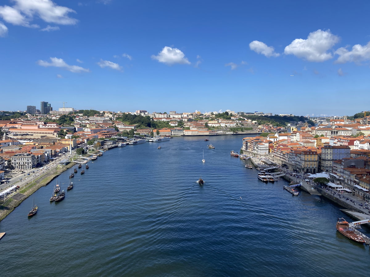 - ドン・ルイス1世橋からドウロ川や街並みを見渡せる