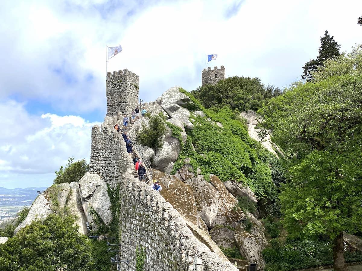 ムーア城は8~9世紀頃にイスラム教徒により建設された城塞です。ムーア人とはイベリア半島のイスラム教徒のことを指します。レコンキスタにより陥落し、その後修復されるも、現在は廃墟となっています。ムーア城は高い丘の頂上に建っており、シントラの景色を眺めることができます。
