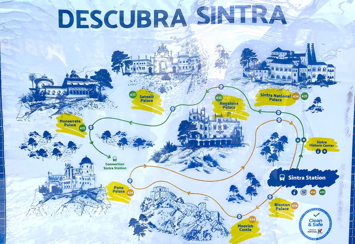 シントラ駅から巡回バス(434番と435番)が出ているので、これを使って各観光施設へアクセスするというのが一般的です。バスに関しては乗り放題チケットがお得です。