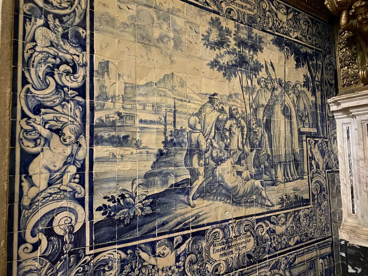 周囲にはアズレージョのタイル祭り。ポルトガルの教会ならではです。