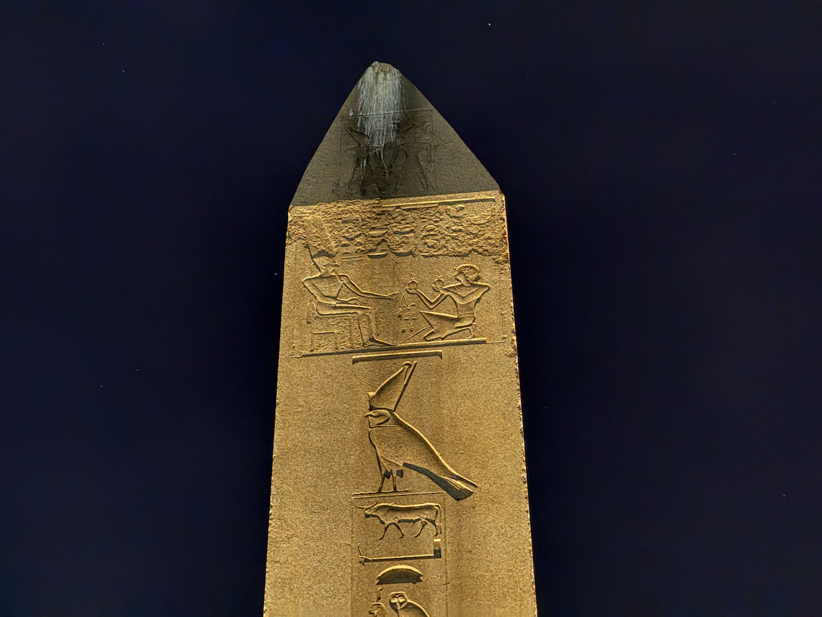 夜でもヒエログリフはしっかり見れます。このオベリスクは本当に良い状態で残ってますね。