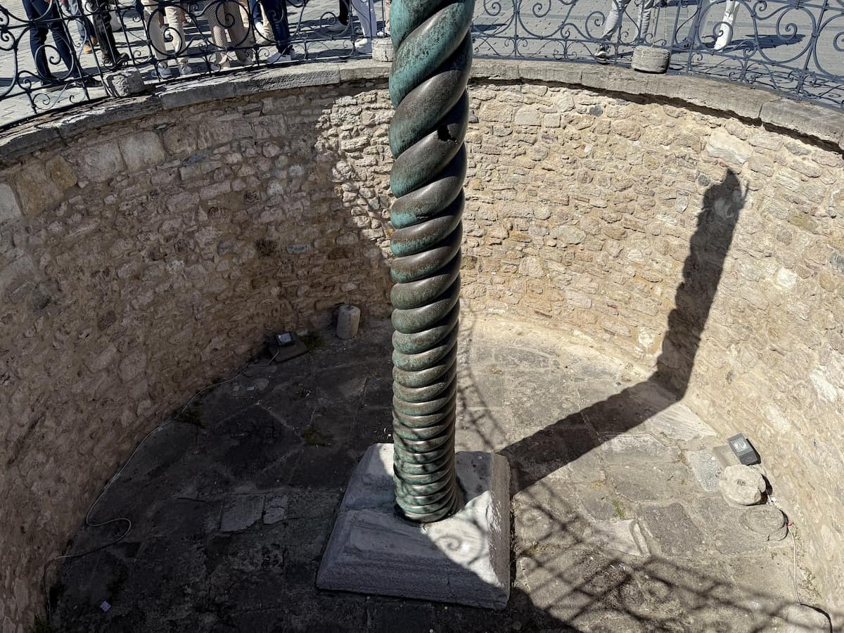 元々金メッキの青銅製の板で覆われていましたが、1204年の第4回十字軍遠征の際に略奪され、現在では石造りの部分のみ残っています。32mくらいの高さがあります。