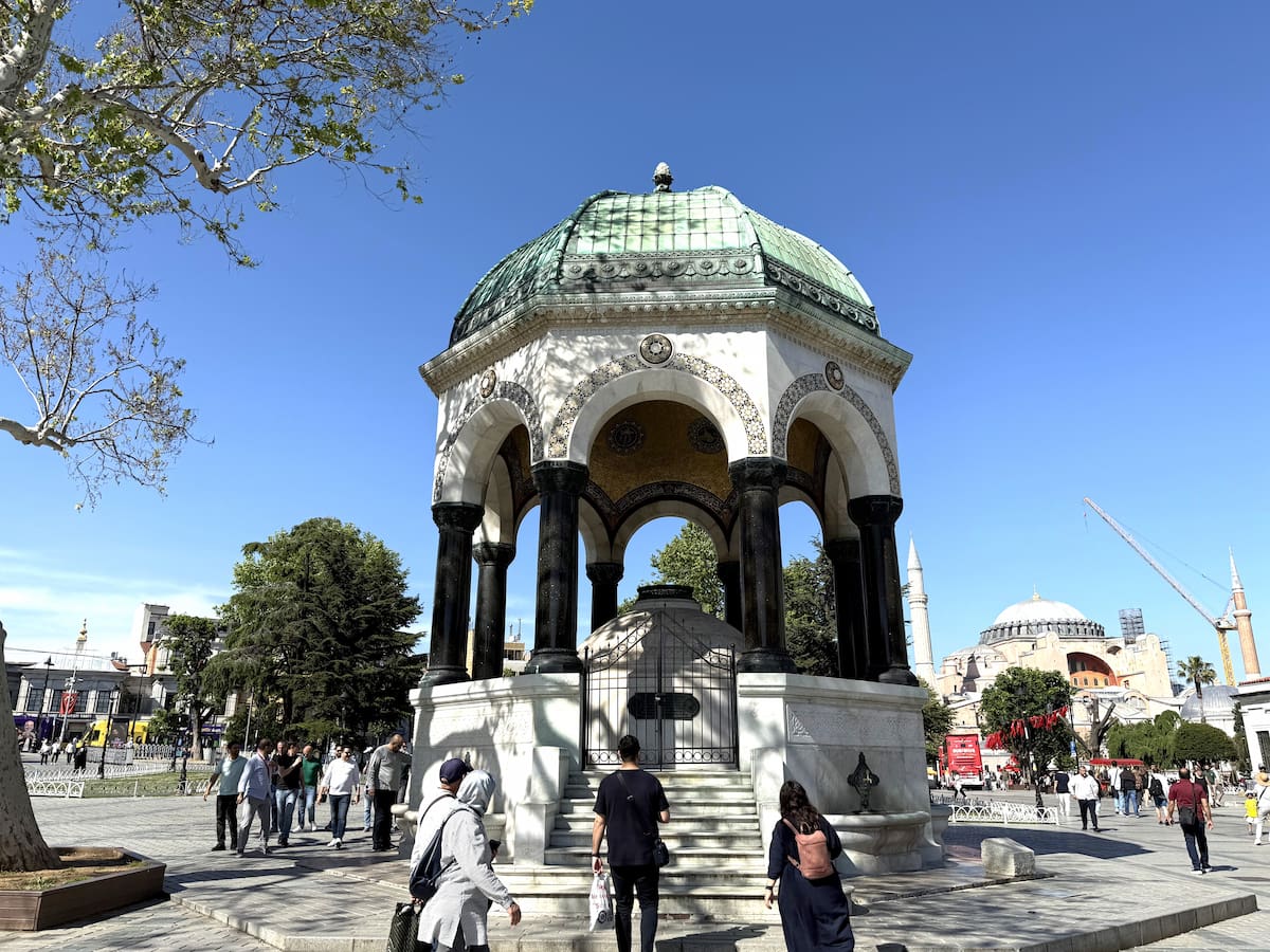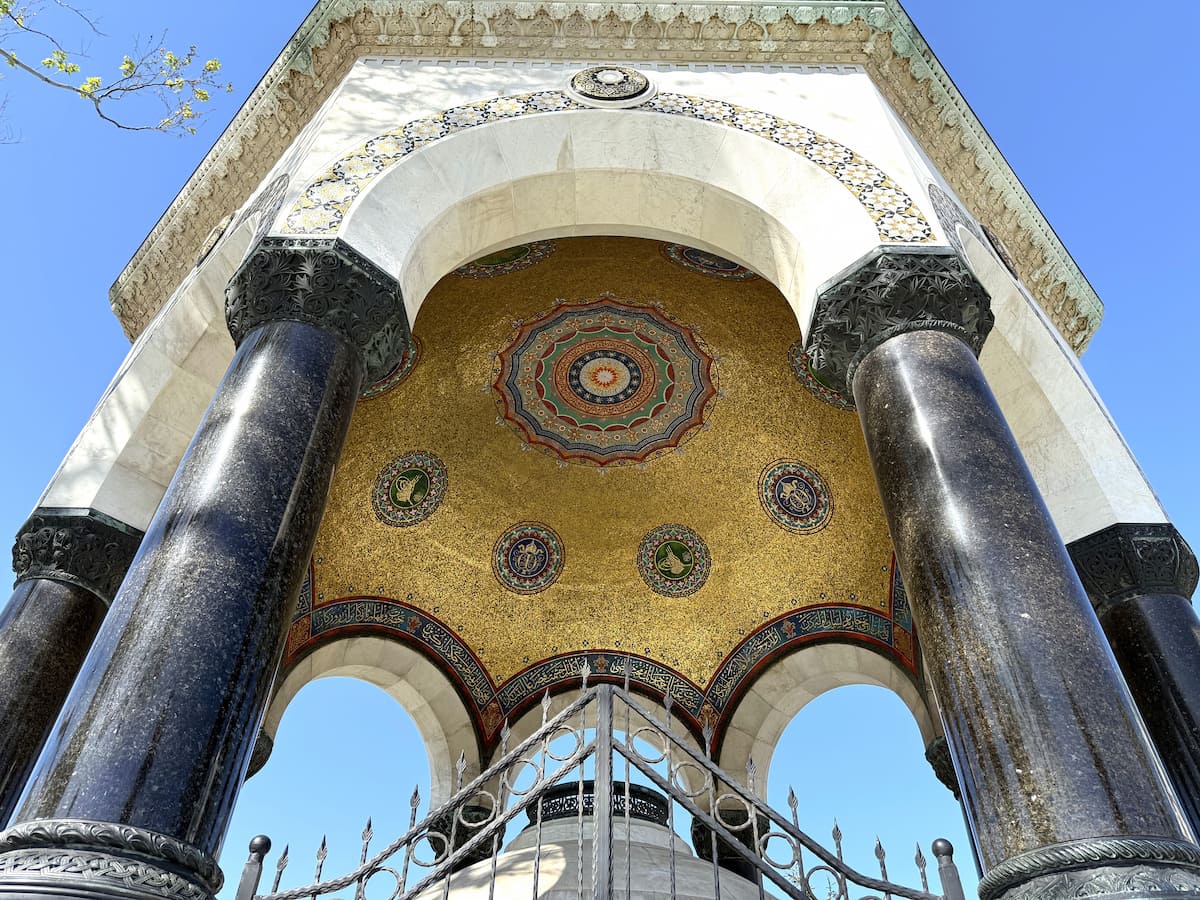 8角形のドームの「ドイツの泉」です。オスマン帝国と同盟関係にあったドイツの皇帝ヴィルヘルム2世が、イスタンブールを訪問したことを記念に造られました。1900年の建設で、ドイツ政府によるものです。