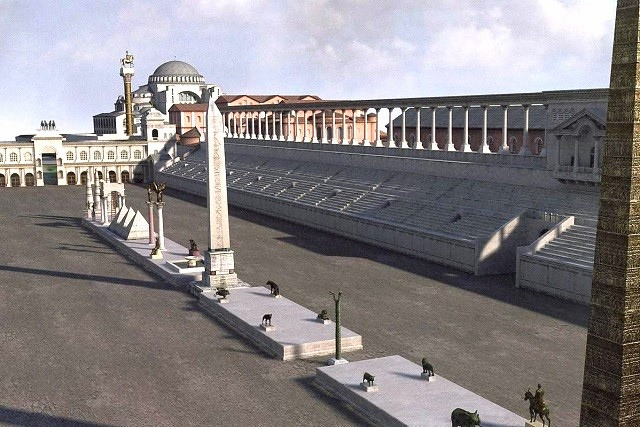324年:ローマ皇帝コンスタンティヌス1世により、ビザンティオンは首都コンスタンティノープルに改められ、ヒッポドロームは大改修されました。10万人が収容可能な大規模の競馬場となりました。