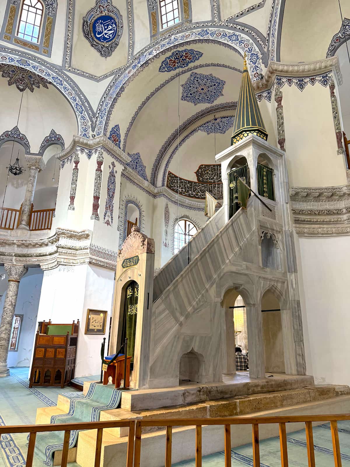大理石のミンバル(⑧)です。美しいです。ミフラーブ(⑦)は結構奥にあり、近くまで行けなかったので撮影できませんでした。