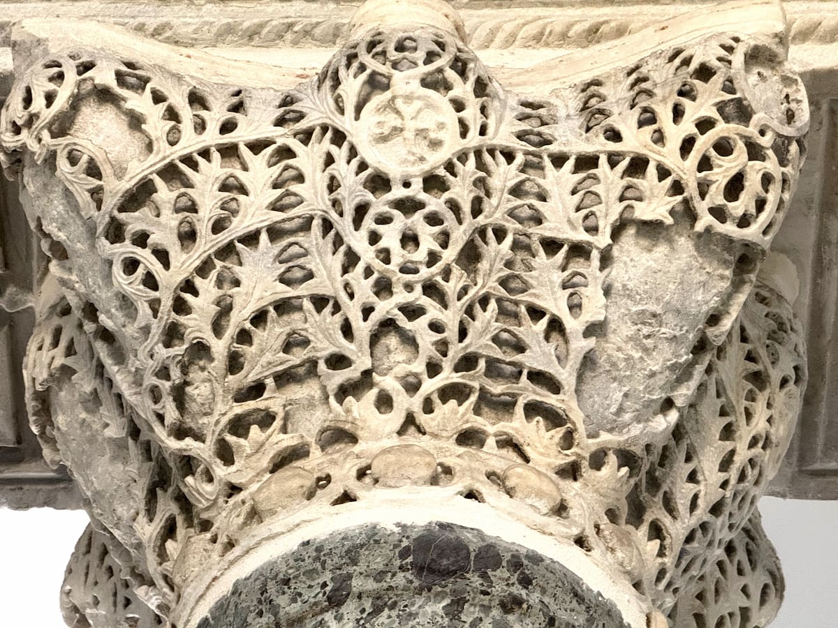 大理石柱の柱頭の透かし彫りです。アヤソフィアで見かけたものと似たようなデザインです。