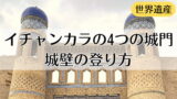【世界遺産】ヒヴァのイチャン・カラの4つの城門を紹介&城壁登ってみた